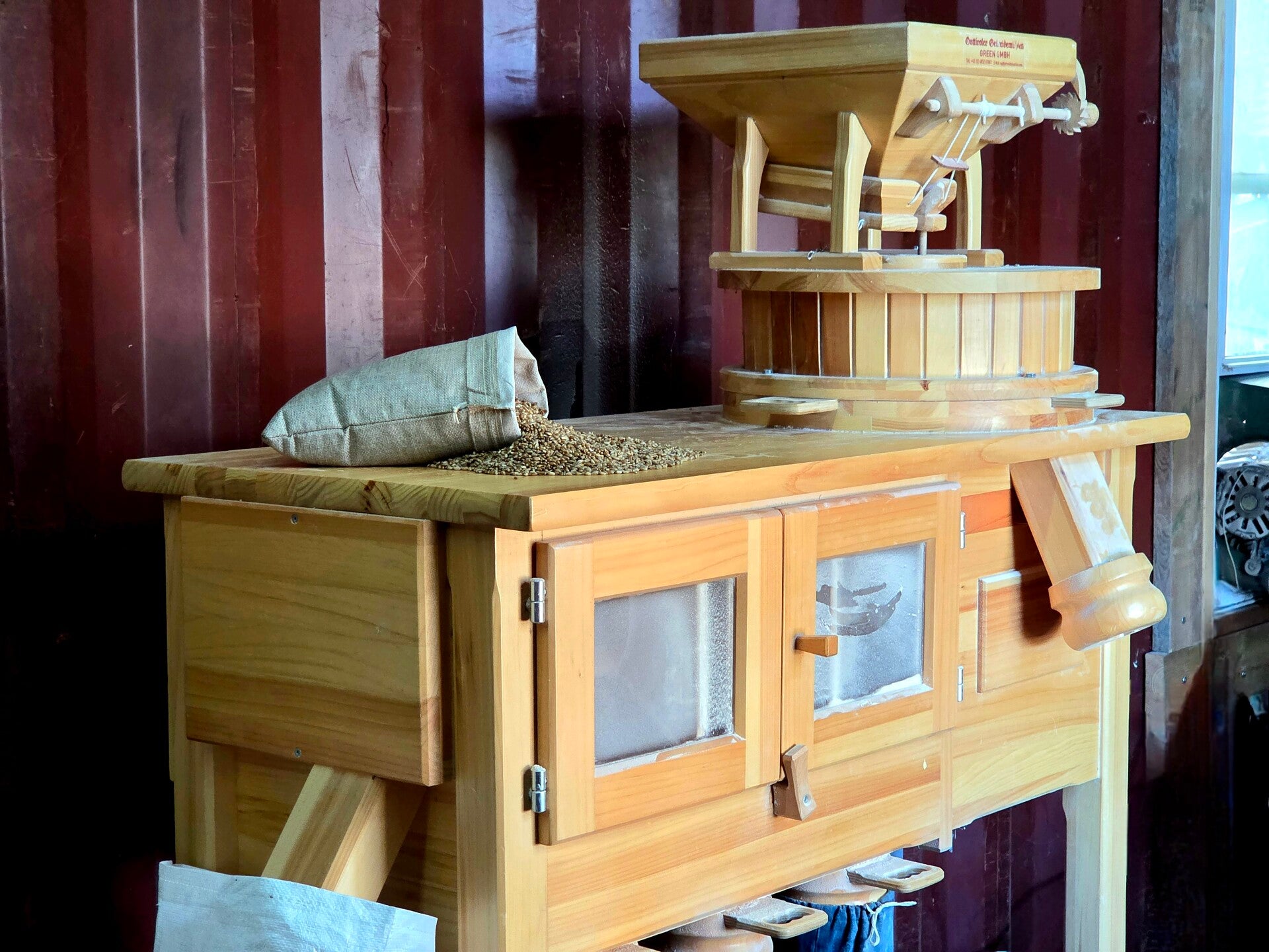 Our Austrian-made stone mill gently grinds our wheat between two granite stones, preserving the flour's natural nutrients. This slow and cool milling process prevents overheating, ensuring that the flour retains its vital components and delivers superior flavour and quality. The stone milling process ensures cool temperatures, and gentler grinding which preserves the flours nutrients